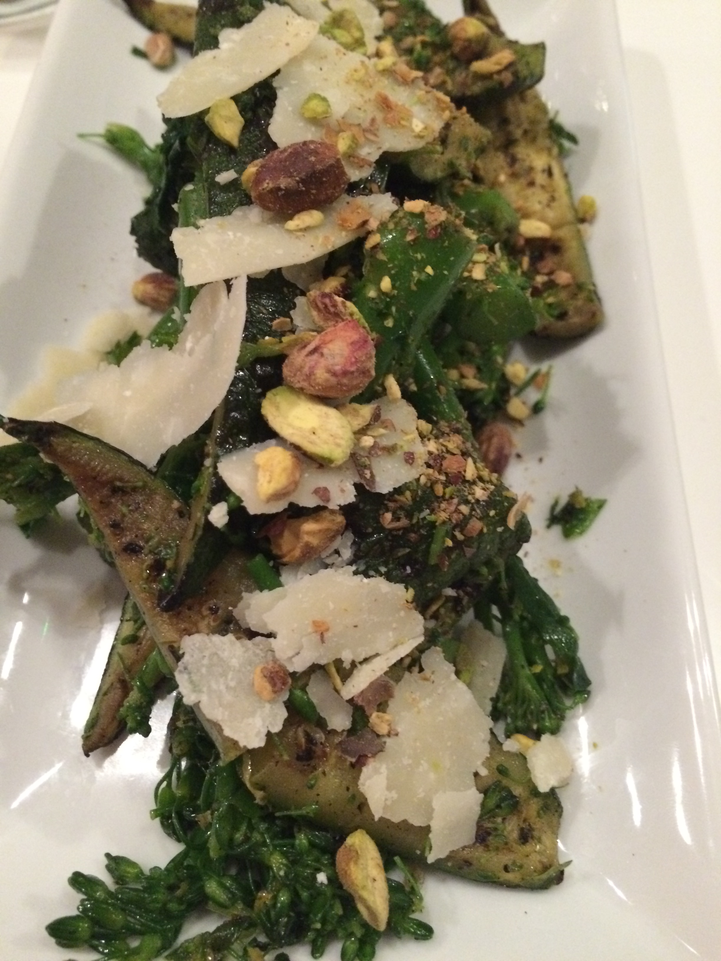 Broccolini , green courgettes, Parmesan, pistachio and truffle oil. (pictured below)