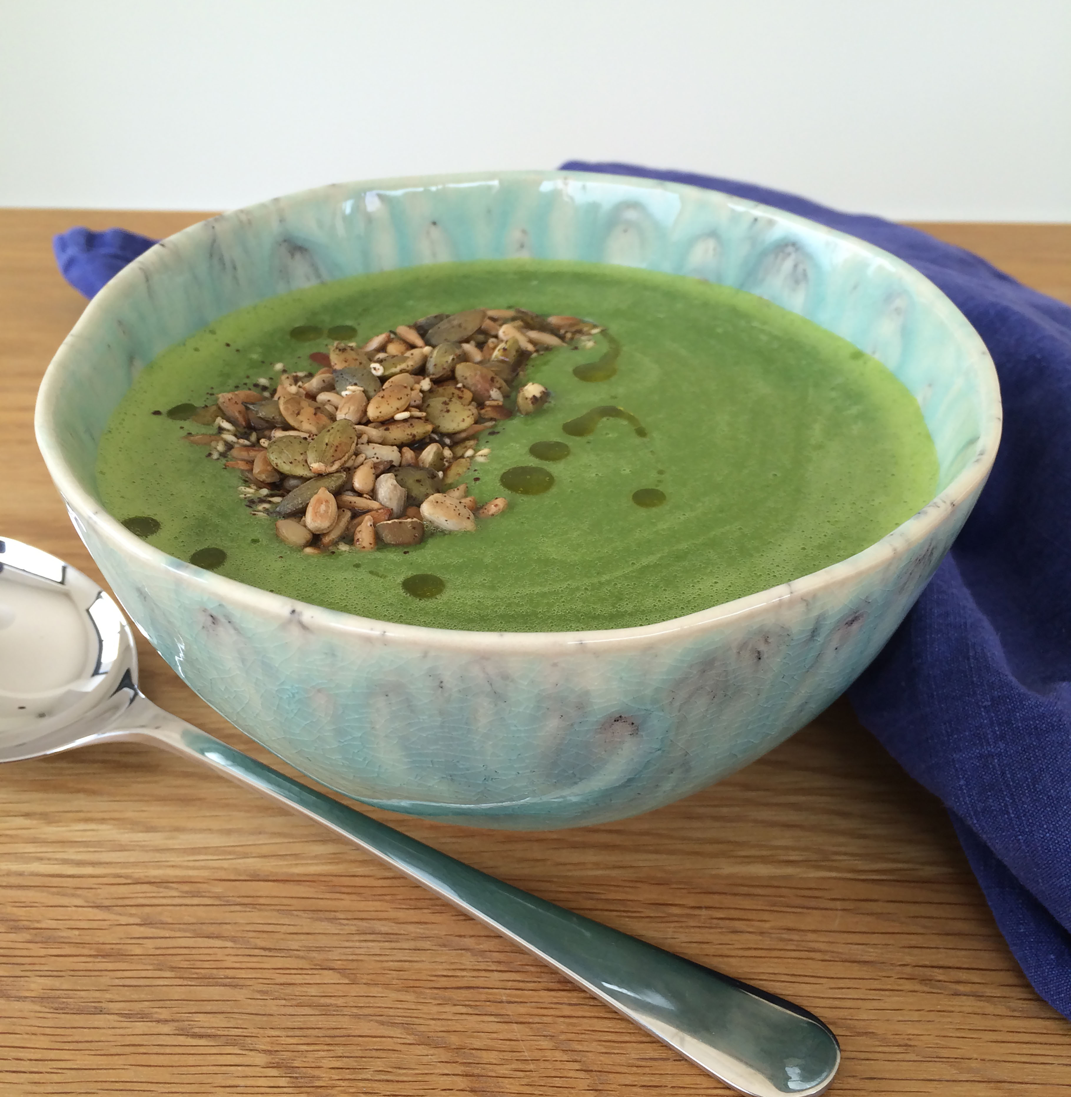 This really is so quick and easy to make and the soup only contains three ingredients! A bowl of this will make a huge boost to your daily vegetable intake, the peas adding a great source of protein and the watercress is packed full of amazing vitamins and minerals.  A perfect lunch, starter or pour into a flask for a healthy packed lunch.  If you have time then do make the seed topping as it gives a great crunchy contrast.  Sprinkle them on top just before serving and if you’ve got any left then store them in an airtight container as they’re great sprinkled over salads. They also add a little protein and are an excellent source of essential minerals and good fats.